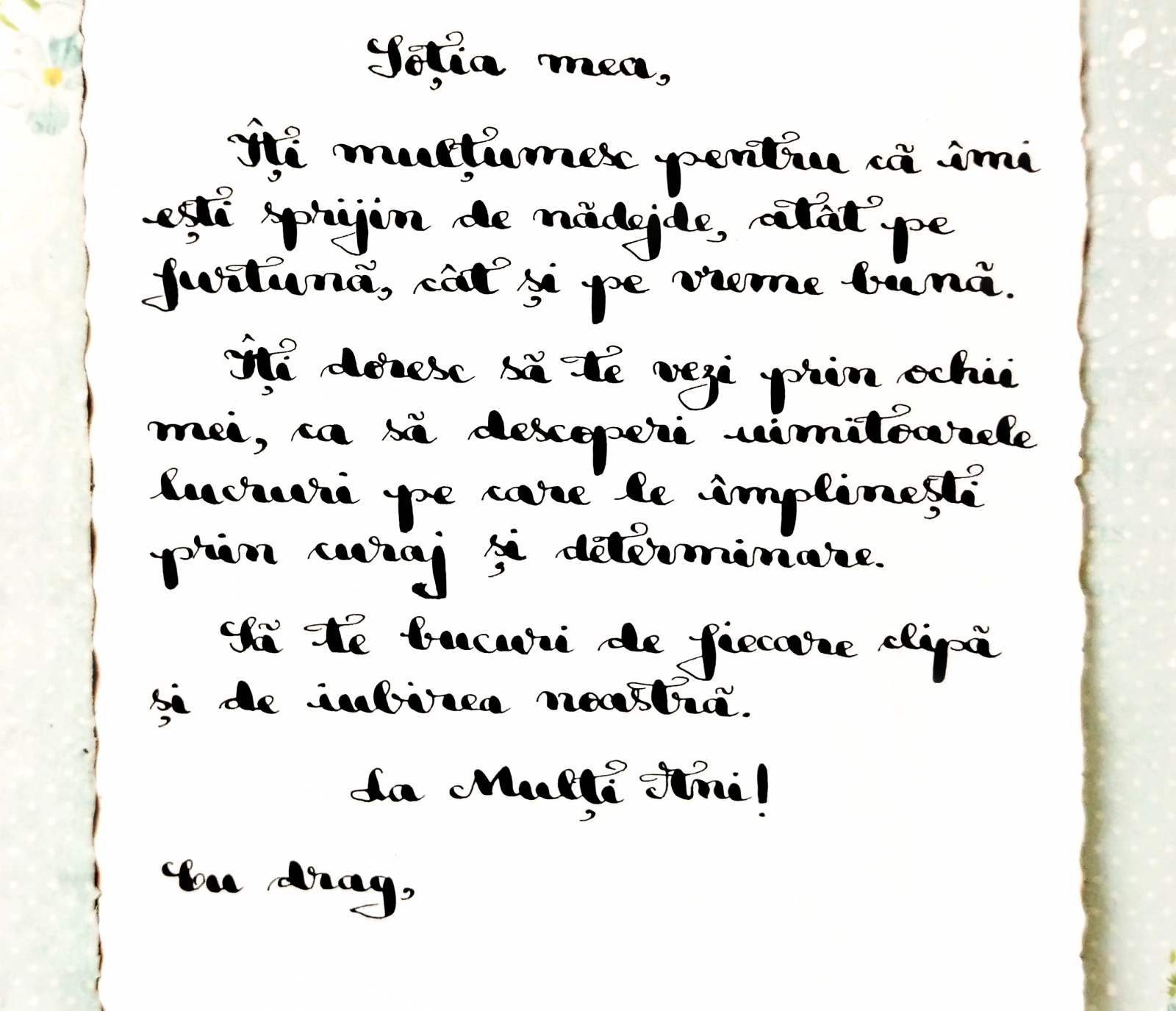 Dacă preferi ca scrisoarea să conțină un mesaj creat de tine, în limita a 50 de cuvinte, trimite-ni-l la contact@safiescrisori.ro