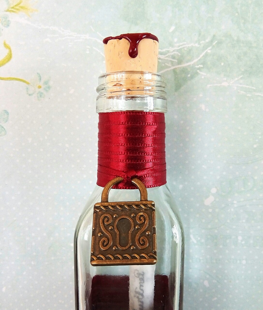 Pentru a bucura inima unui tată uimitor, scrisoarea este găzduită de o sticlă îmbrăcată în panglică delicată și decorată cu un ornament din bronz.