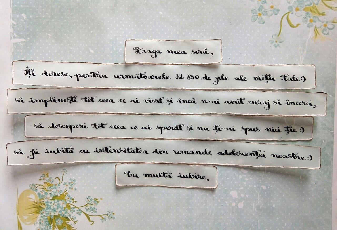 Mesajul este împărțit pe mai multe bilețele și destinatara îl va descifra punându-le în ordine, asemeni dezlegării unui puzzle.