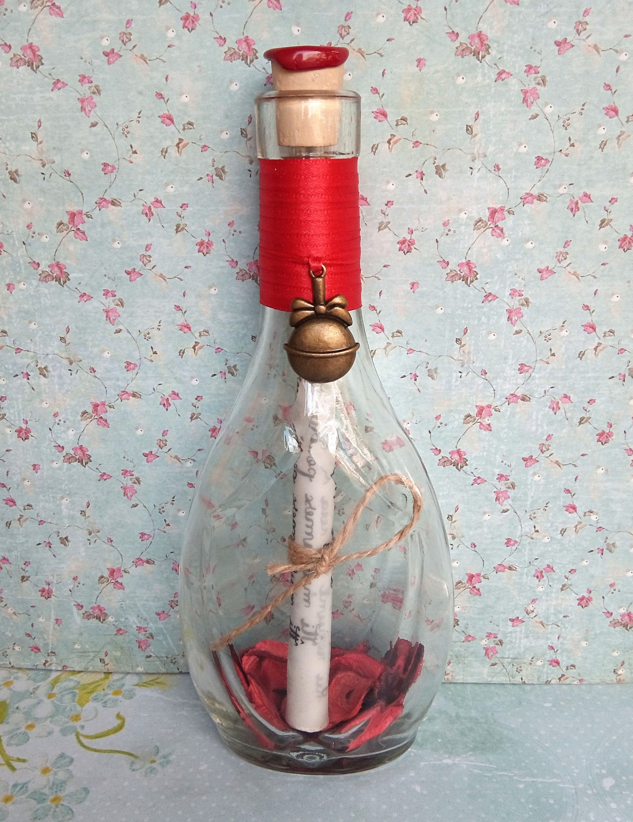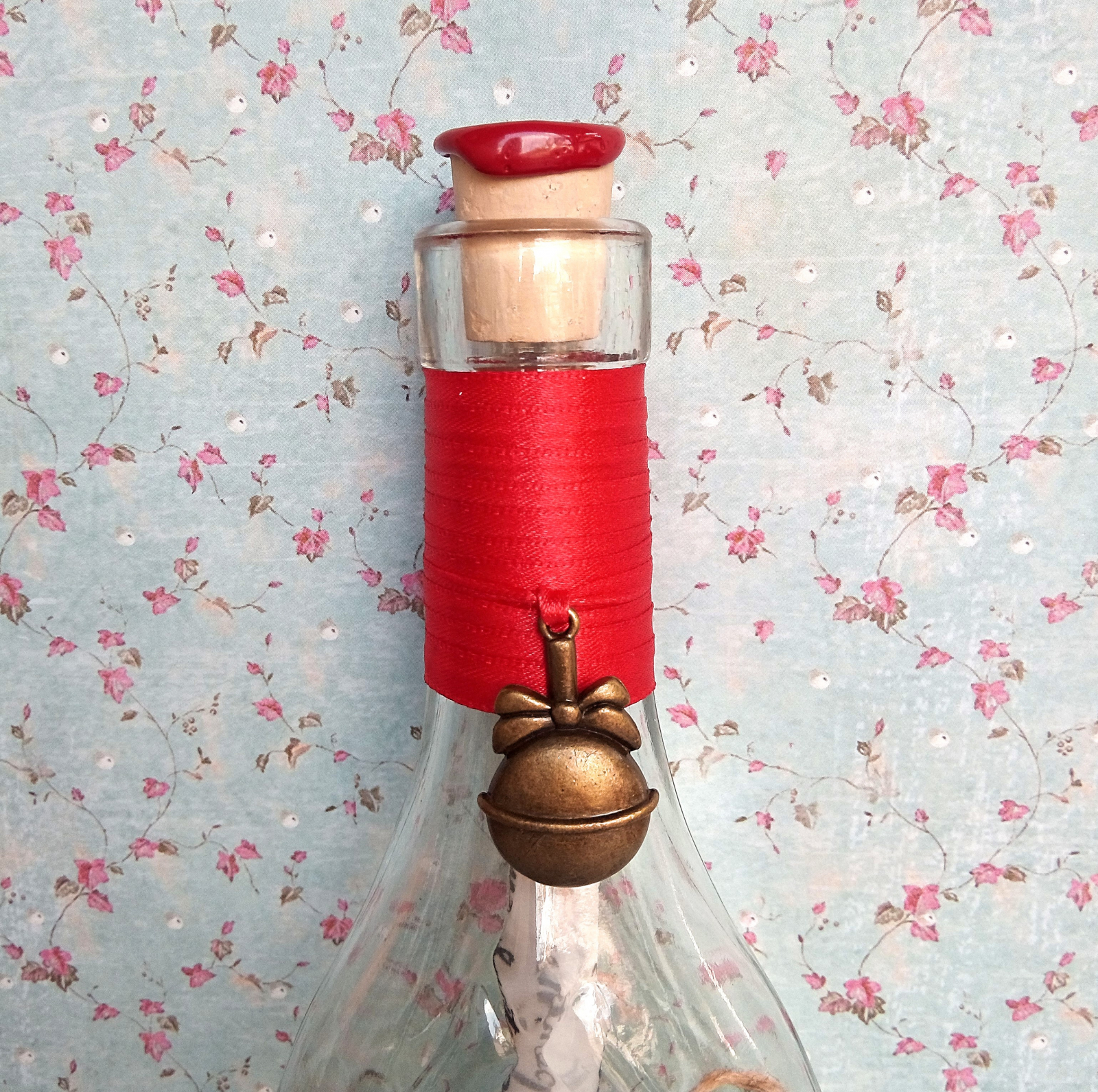 Scrisoare tip papirus scrisă cu toc, peniță și cerneală specială pe hârtie arsă pe margini. Scrisoarea este "găzduită" de o sticlă decorată în spiritul Crăciunului: globul din bronz arată festiv pe panglica din satin roșu, iar ceara de pe dopul de plută și pot-pourri-ul discret parfumat din interior desăvârșesc imaginea acestui cadou inspirat! Dacă preferi ca scrisoarea să conțină un mesaj creat de tine, în limita a 50 de cuvinte, trimite-ni-l la contact@safiescrisori.ro Iar dacă vrei să compunem noi mesajul, adaugă în “Coș” produsul “Mesaj personalizat compus de noi - pentru scrisoare tip papirus în sticlă” și noi te vom contacta pentru a stabili detaliile.