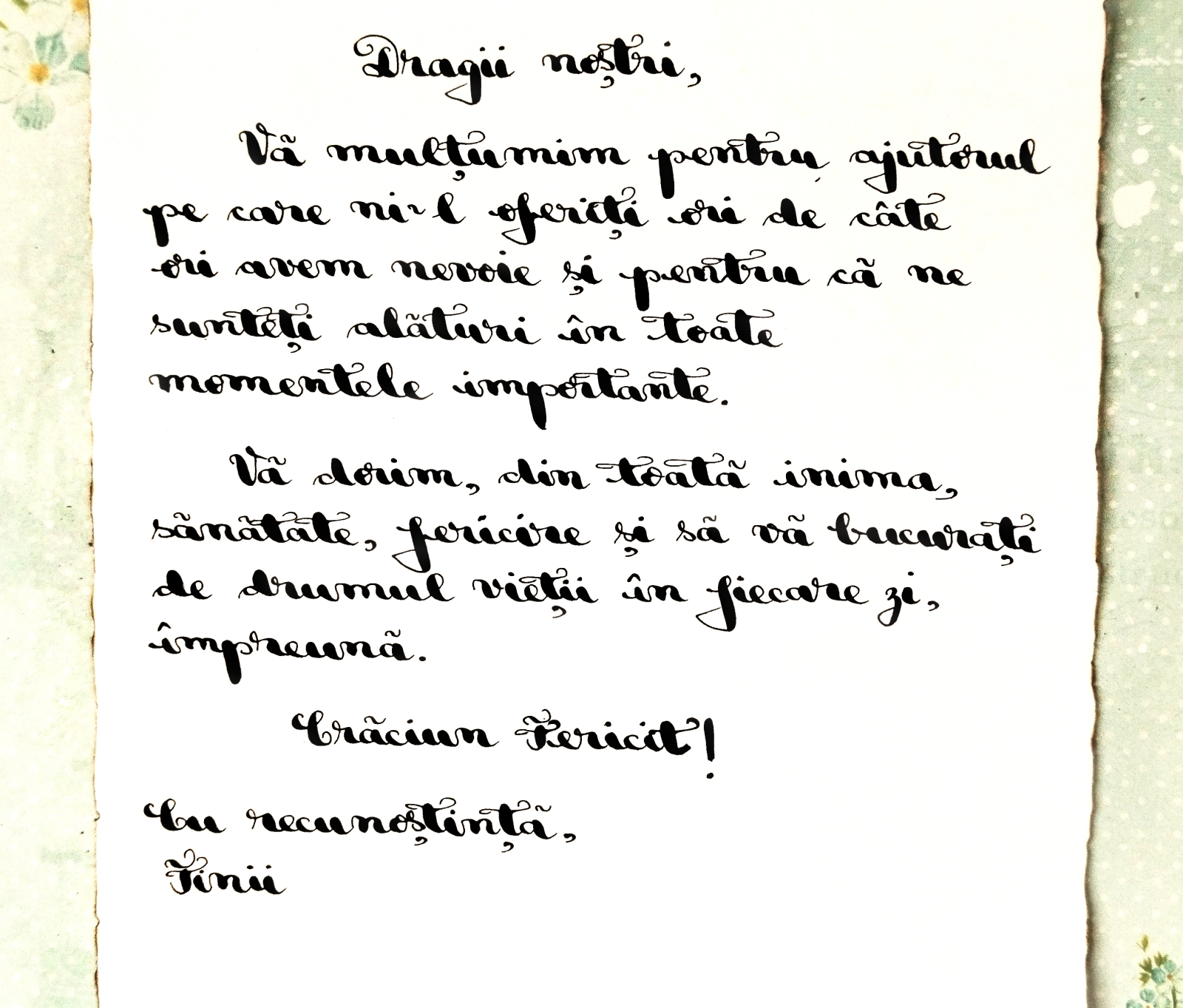 Dacă preferi ca scrisoarea să conțină un mesaj creat de tine, în limita a 50 de cuvinte, trimite-ni-l la contact@safiescrisori.ro.