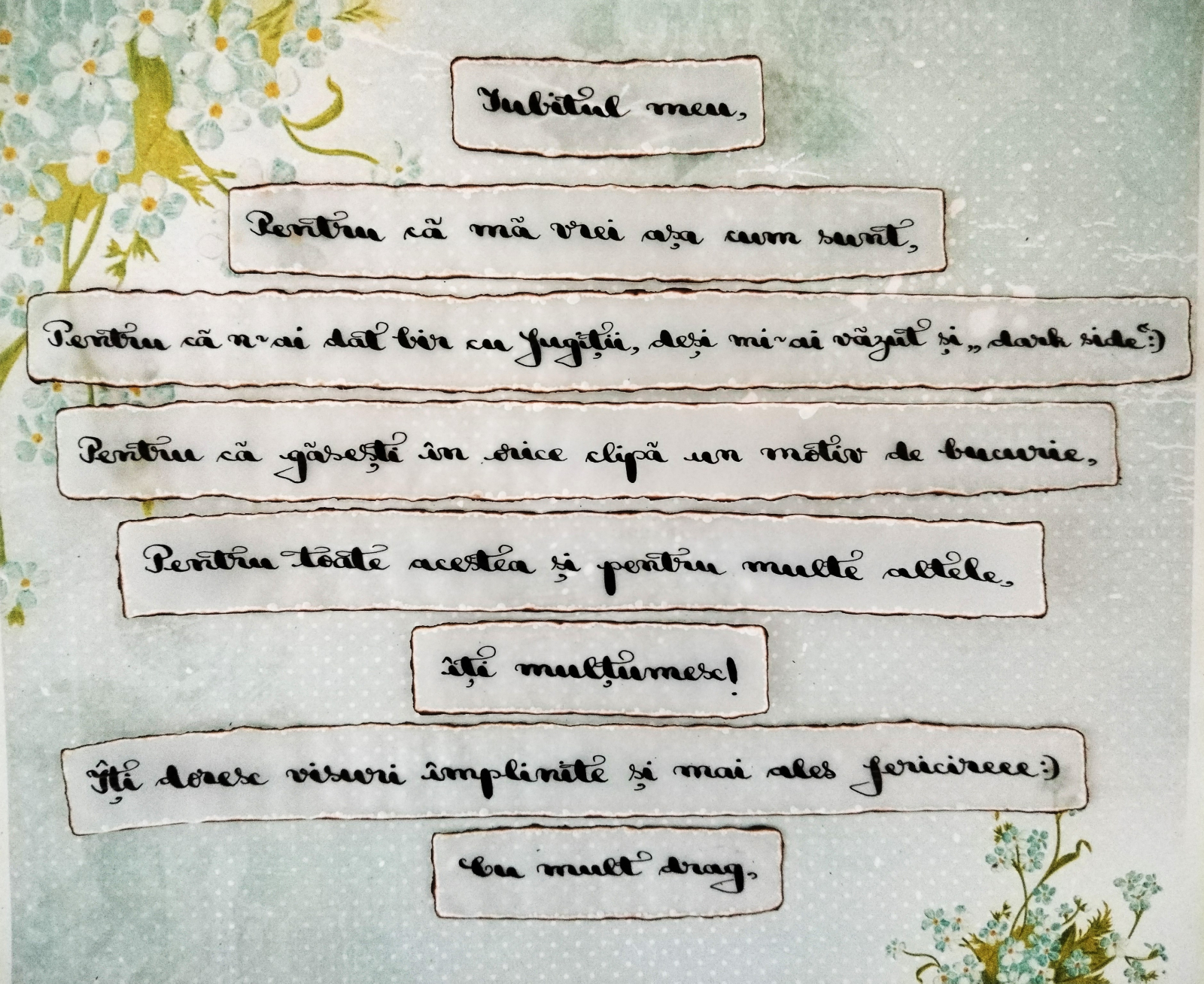 Dacă vrei să scriem mesajul compus de tine, în limita a 50 de cuvinte, trimite-ni-l la contact@safiescrisori.ro.